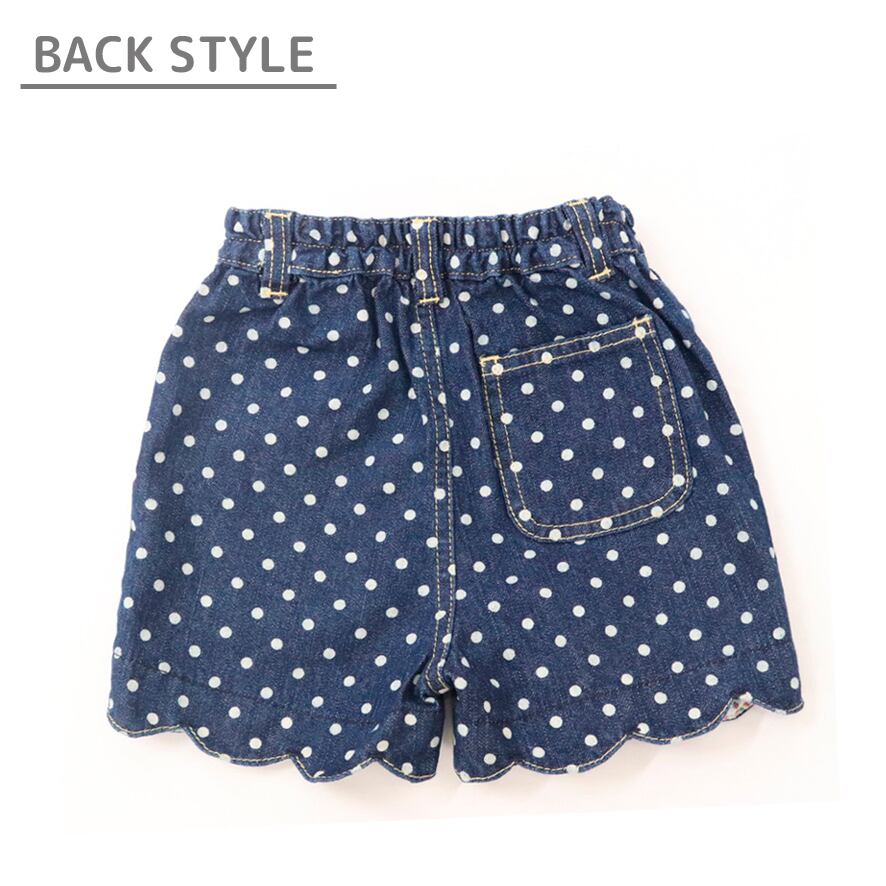 ・裾のスカラップカットとドット柄がかわいいデニムショートパンツです。