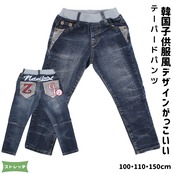 33009 ストレッチ デニム テーパードパンツ | 子供服 キッズ 男の子 100 110 150 ネイビー 長ズボン ロングパンツ